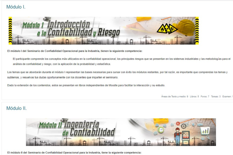 En el presente trabajo, se exponen los antecedentes y las experiencias al desarrollar un ambiente virtual de aprendizaje del seminario de actualización con opción a titulación "Confiabilidad Operacional para la Industria". Este seminario, se oferta en la Escuela Superior de Ingeniería Mecánica y Eléctrica Unidad Azcapotzalco (ESIME Azcapotzalco), al que se inscriben pasantes de las carreras de ingeniería del Instituto Politécnico Nacional (IPN); además de ofertarse al público interesado, se difunde principalmente, en la industria pública y privada.