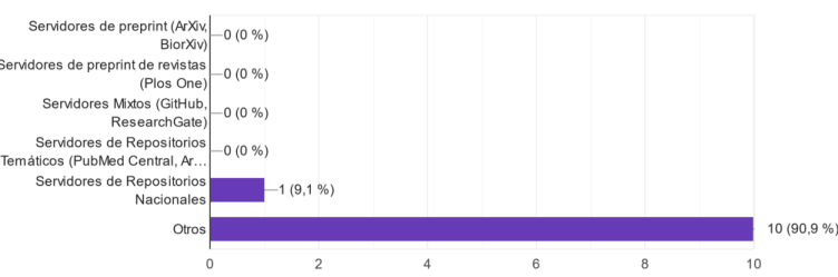 Otra de las aristas en la revisión abierta es la apertura del manuscrito (open pre-review manuscripts). En este sentido, la figura 2 ilustra los resultados. Generalmente se utilizan servidores de preprint, entendidos como repositorios o archivos en línea que contienen trabajos o datos relacionados con diferentes artículos académicos que aún no han sido revisados por pares o aceptados por las revistas académicas tradicionales. Solo un editor afirmó utilizar servidores nacionales. El 90% de los editores alegan utilizar otra vía para la apertura de los manuscritos, característica que no deja de ser preocupante en tanto, se pudieran estar compartiendo en lugares no seguros para este tipo de prácticas (Figura 2).